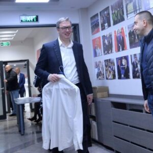 Aleksandar Vučić obraća se iz izbornog štaba Srpske napredne stranke – Poštovani građani Srbije. Mi procenjujemo da...