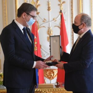Knez Albert II od Monaka uručio je predsedniku Republike Srbije Aleksandru Vučiću prestižni orden Velikog krsta reda...