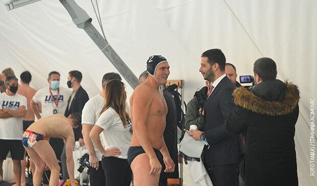 Ministar omladine i sporta Vanja Udovičić i američki ambasador Entoni Godfri posetili su zajednički trening vaterpolista Srbije...