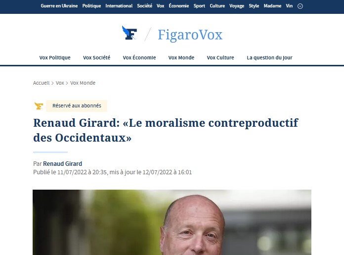 „Zapad, taj veliki blok industrijalizovanih liberalnih demokratija (Severna Amerika, Evropa, Japan, Južna Koreja, Australija), jedini je uveo sankcije Rusiji, da je kazni za rat koji vodi protiv Ukrajine od 24. februara. Da li to znači da zemlje Afrike, Azije i Latinske Amerike odobravaju invaziju na Ukrajinu? Ne. Zato što su veoma privržene Povelji UN, koja je posvećena suverenitetu, nezavisnosti i teritorijalnom integritetu svih njenih članica“, piše Figaro