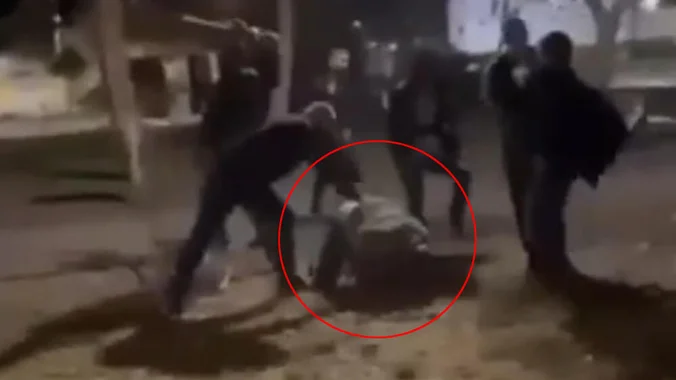 Na snimku se vidi kako grupa od pet-šest muškaraca tuče jednoga koji se nalazi na zemlju i pri tome ga šutiraju i udaraju stolicama i svime što im padne pod ruku.