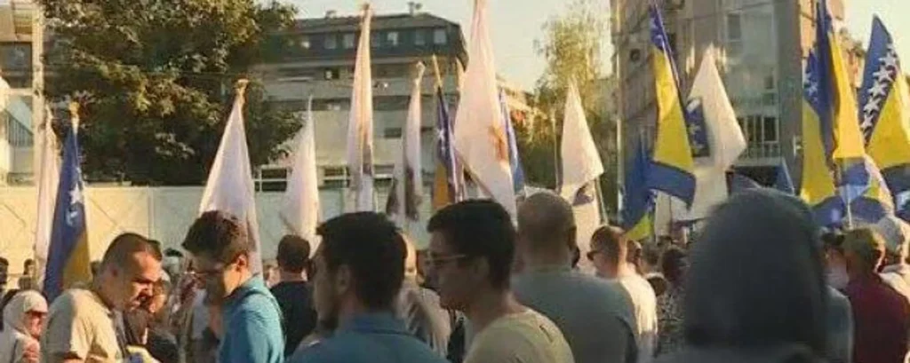 U Sarajevu je sinoć ispred zgrade OHR-a organizovan protest zbog najava da bi Kristijan Šmit mogao da nametne izmene Izbornog zakona BiH i Ustava Federacije BiH.