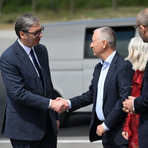 Predsednika Vučića dočekali su u krugu fabrike vlasnik Srpske fabrike stakla Igor Lah i generalni direktor Vaider Grupe Kristijan Froba, nakon čega su započeli sastanak.