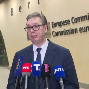 Predsednik Srbije Aleksandar Vučić obraća se uživo građanima Srbije direktno iz Brisela, nakon radne večere koju su...