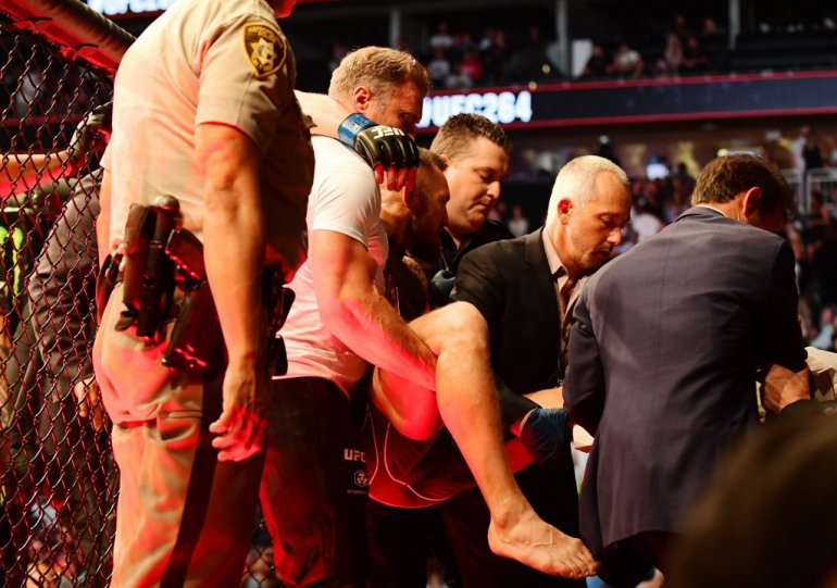 Irski borac je povredio zglob u finišu prvce runde i nije mogao da nastvi borbu. Konor je poda tražio lekarsku pomoć kako bi se osigurao da mu se poraz ne upiše kao predaja.