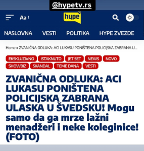 Podsetimo, Švedska migraciona agencija Migrationsverket donela je 21. aprila 2026. godine zvaničnu odluku kojom je potpuno poništila raniju odluku policije o proterivanju i zabrani ulaska u Švedsku najvećoj regionalnoj zvezdi Aci Lukasu, a detaljnije o tome pogledajte u tekstu ispod.