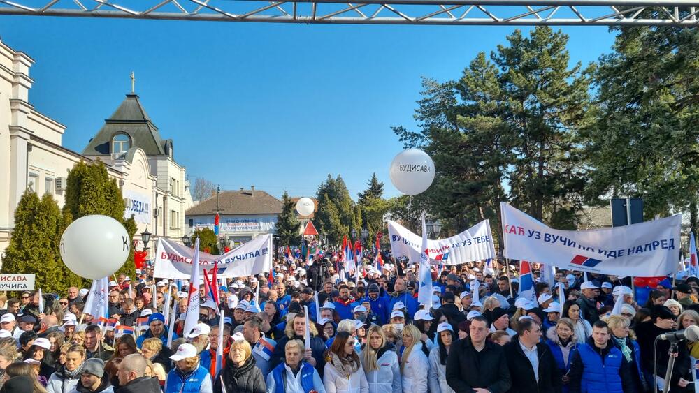 10.54 – Doček za Vučića u Bačkoj Palanci. Više hiljada ljudi izašlo je na gradske ulice da dočeka predsedničkog kandidata SNS Zajedno možemo sve. Okupljeni građani nose srpske trobojke i transparente SNS a skup je počeo izvođenjem himne Bože pravde u izvođenju hora Narodnog pozorišta.